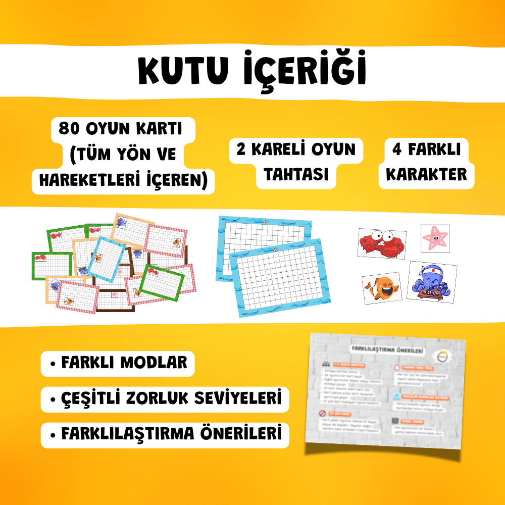 5-8 yaş çocuklarının; teneffüste ya da evde keyifle oynayarak, yön kavramını geliştirmelerine ve uzamsal hareketleri anlamlarına yardımcı olan eğlenceli bir matematik oyunu